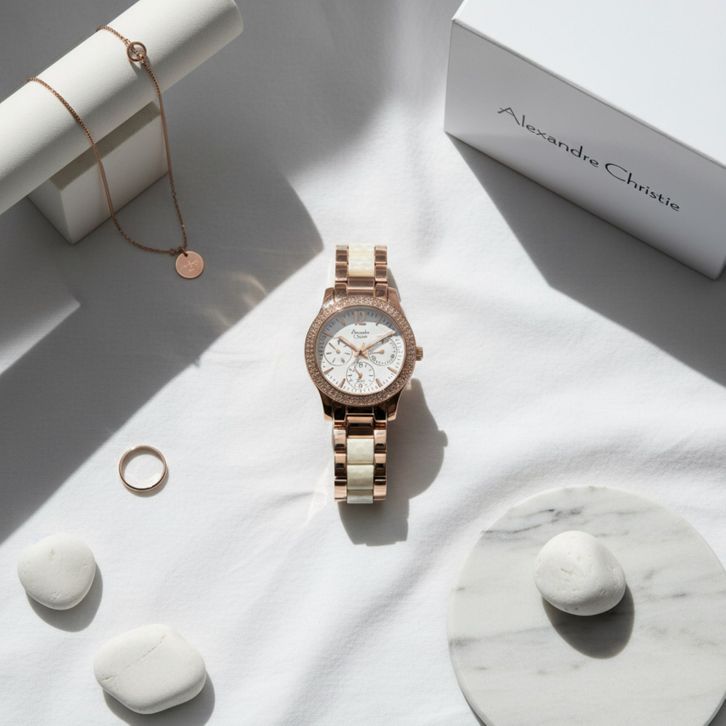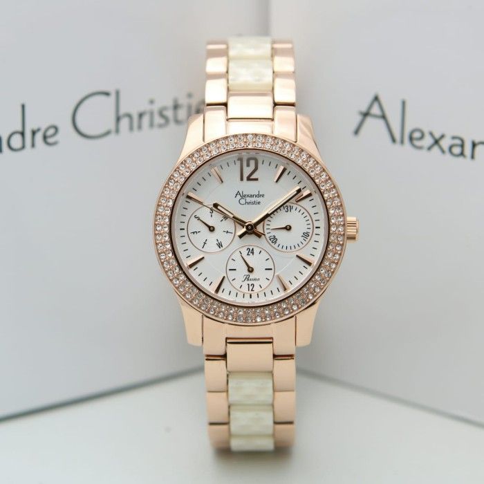 Jam Tangan Wanita Alexander Cristie Ac2463 Original Rosego-ld White