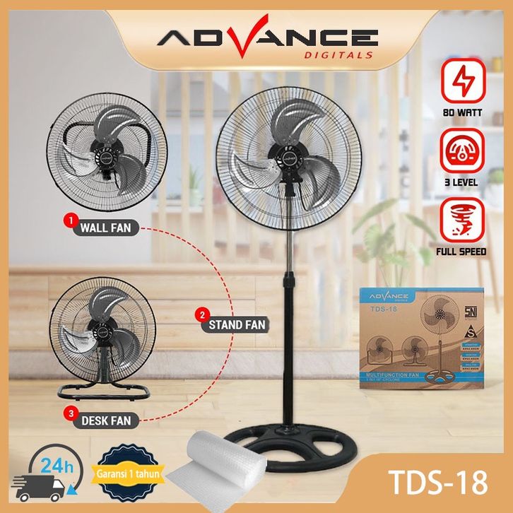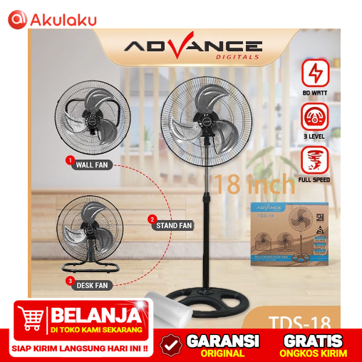 ADVANCE KIPAS ANGIN LISTRIK 18 INCH STAND / MEJA / DINDING MUKA 3 IN 1 KIPAS ANGIN