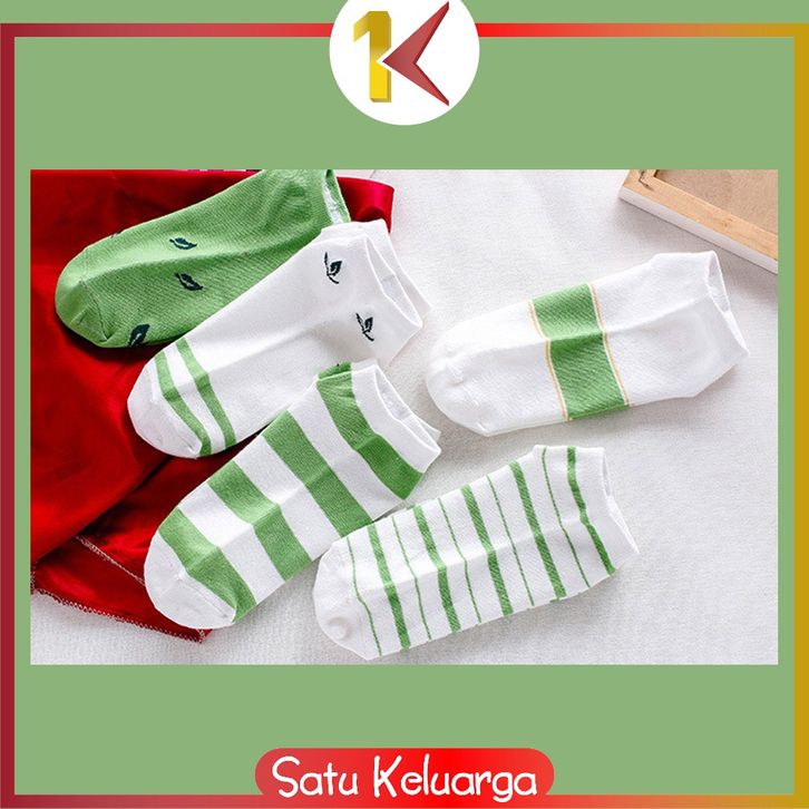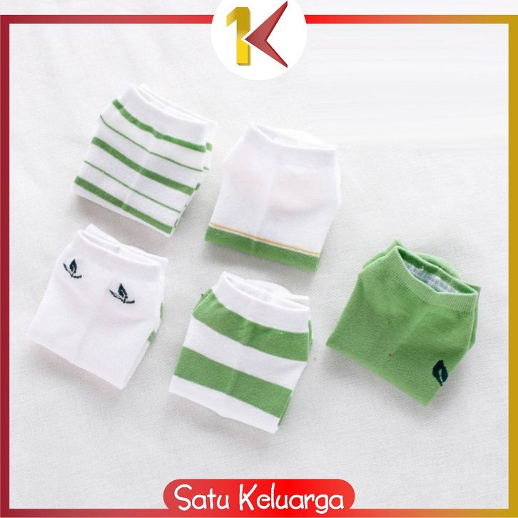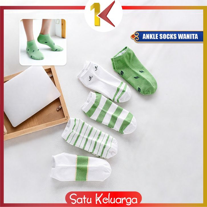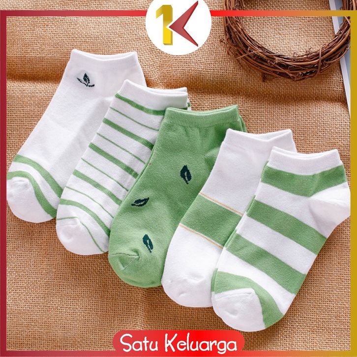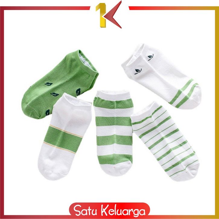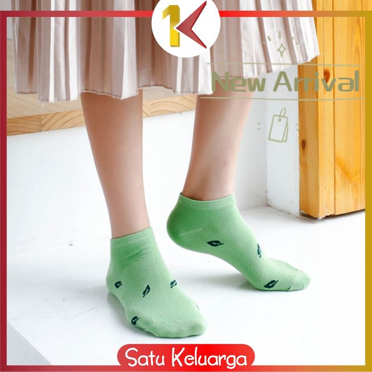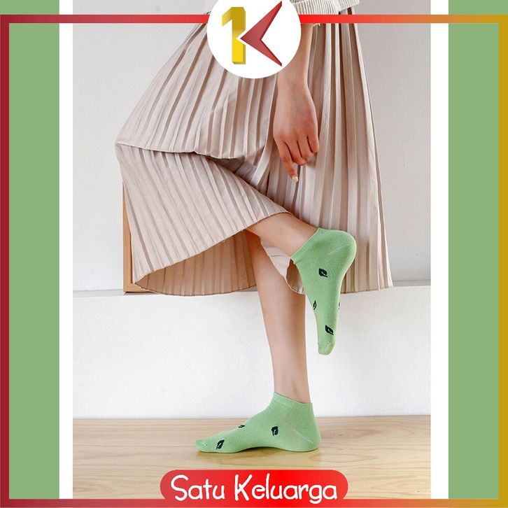 SK-P185 Kaos Kaki Semata Kaki Motif Daun Wanita Gaya Korea / Green Leaf Ankle Sock / Kaus Kaki Pendek Wanita Dewasa