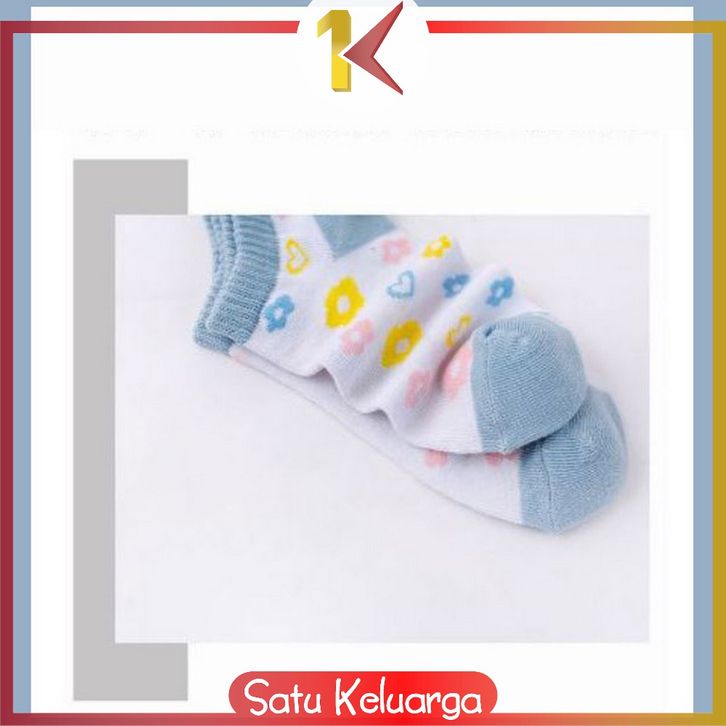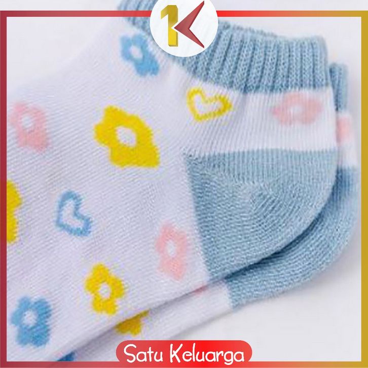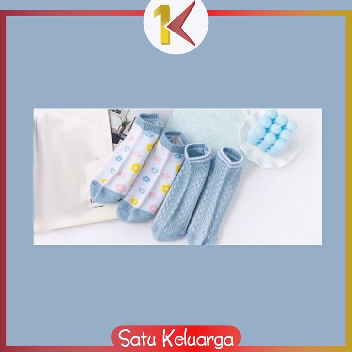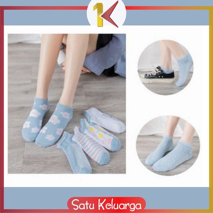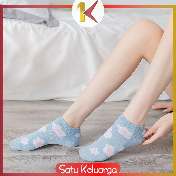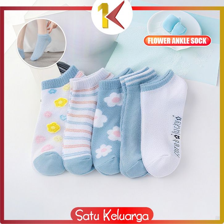 SK-P186 Kaos Kaki Pendek Semata Kaki Motif Bunga Biru Wanita Korean Style / Flower Ankle Sock / Kaus Kaki Pendek Wanita