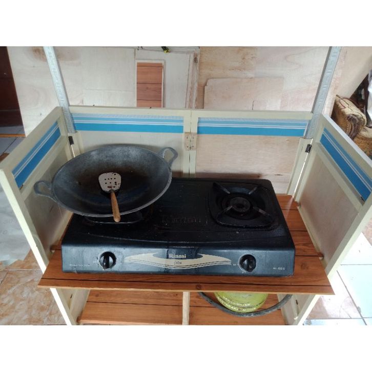 Booth Portable / Gerobak Lipat / Gerobak Dagang / Gerobak Jualan / Meja Lipat / Meja Wajan 2 Tungku