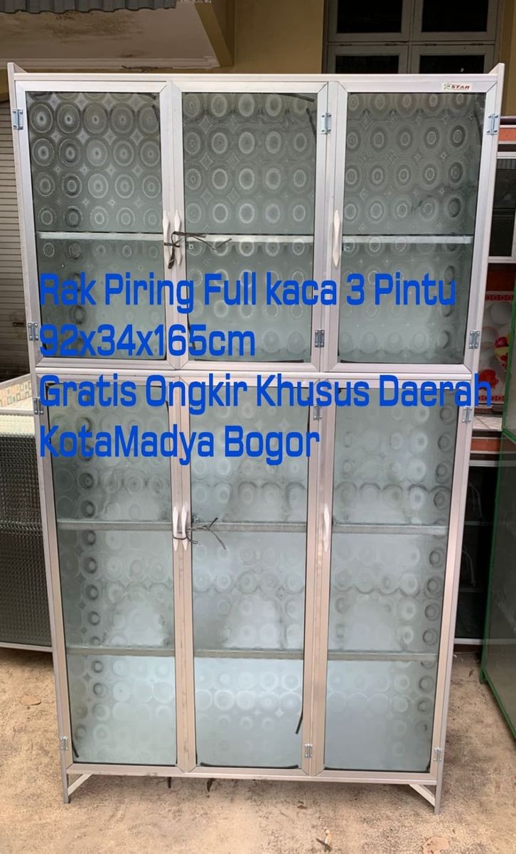 Lemari Rak Piring FULL Kaca 3 pintu Alluminium Khusus BOGOR dan DEPOK