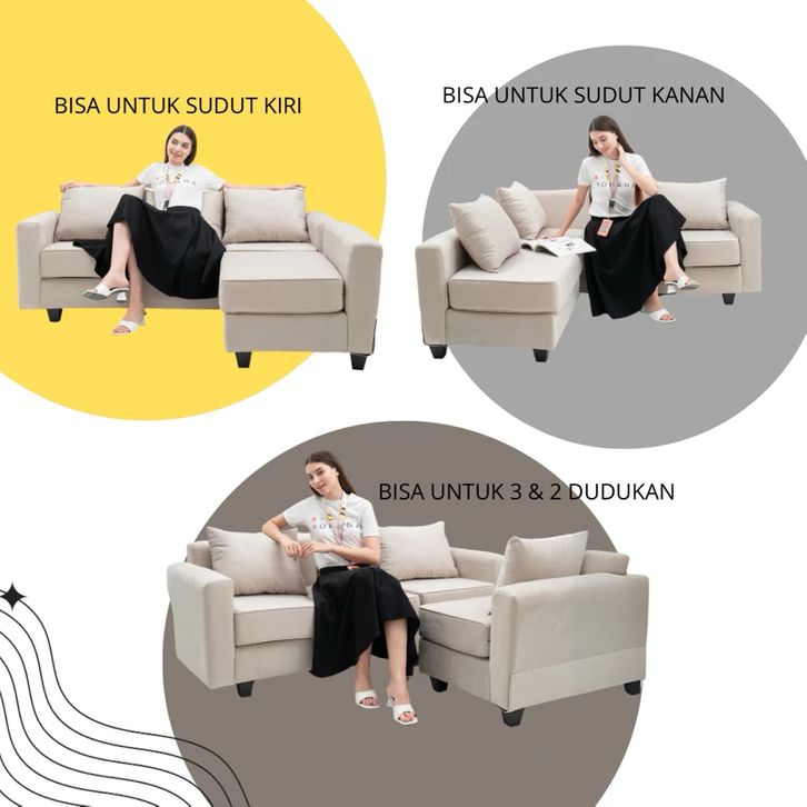 SOFA RUANG TAMU MINIMALIS L PUTUS SUDUT AESTHETIC TANPA MEJA FREE BANTAL
