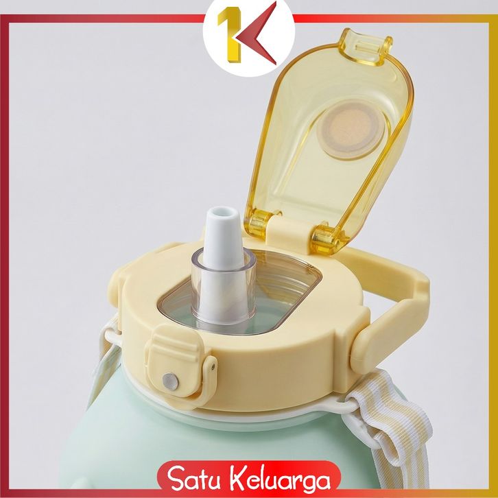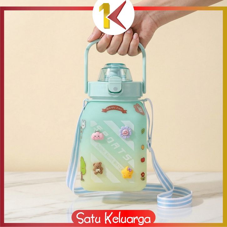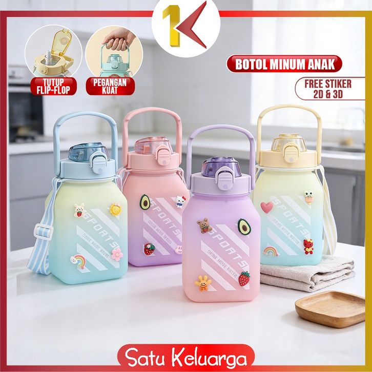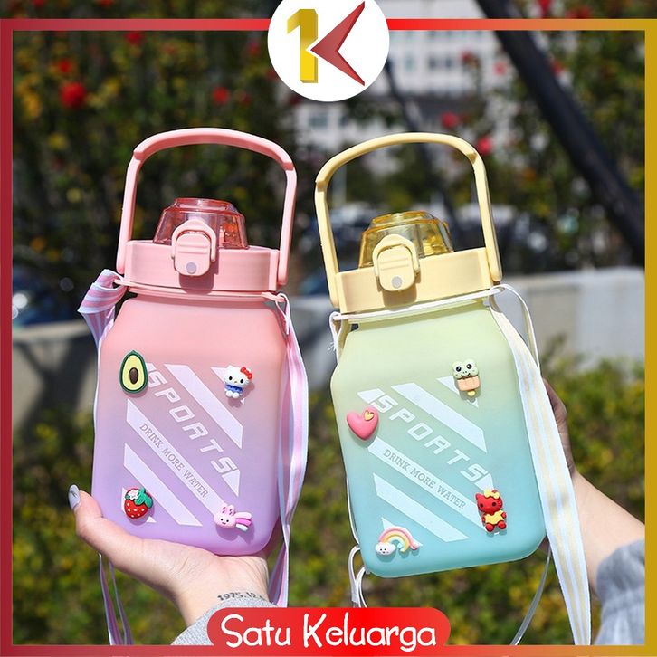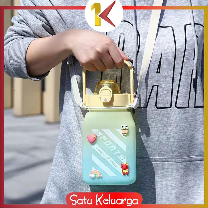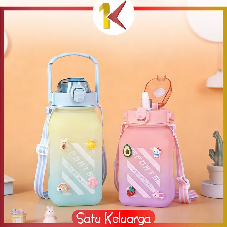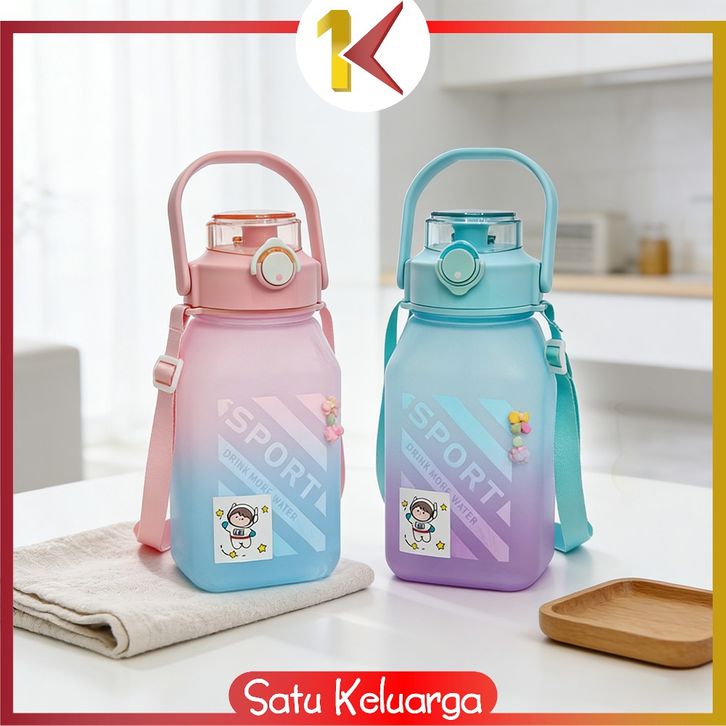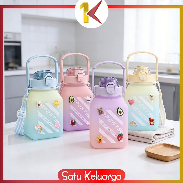 SK-C468 Botol Minum Anak Gemoy Kotak 1500ML Warna Gradasi Bottle Tumblr Sedotan dan Tali Panjang BPA FREE