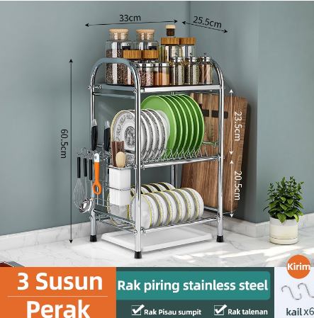 Rak Dapur Susun Tempel Dinding Stainless Steel