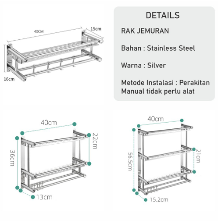 Rak Kamar Mandi Tempel Susun 2 Stainless Steel