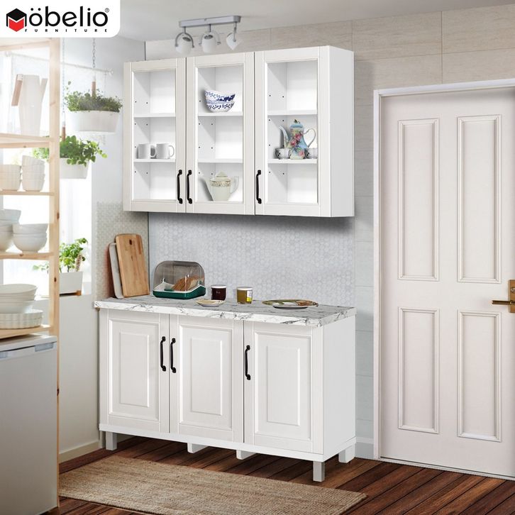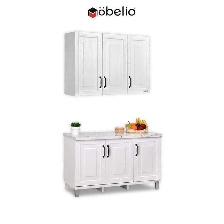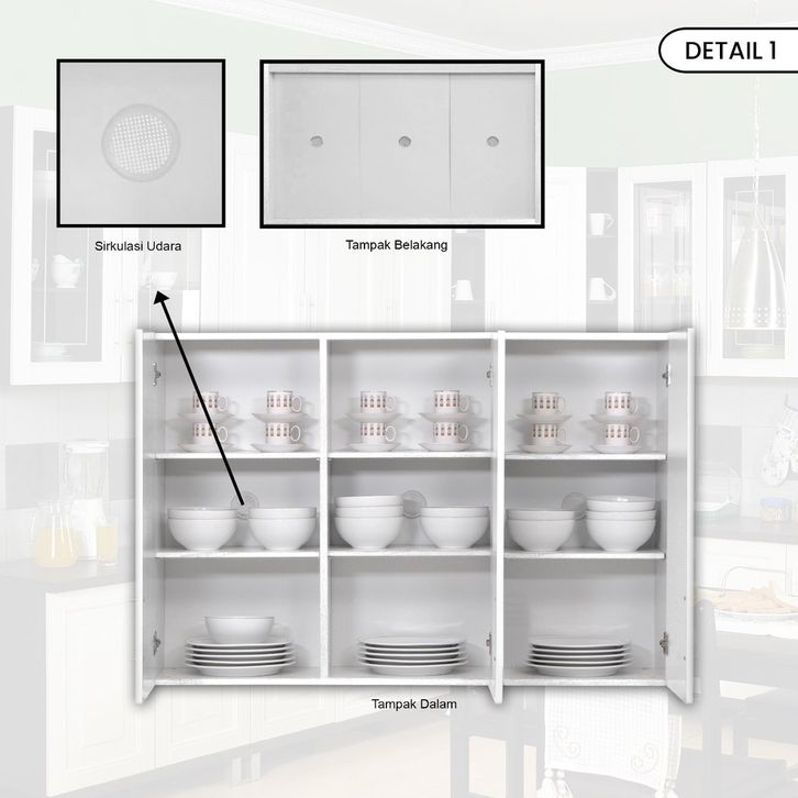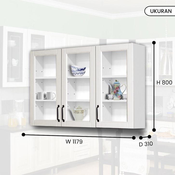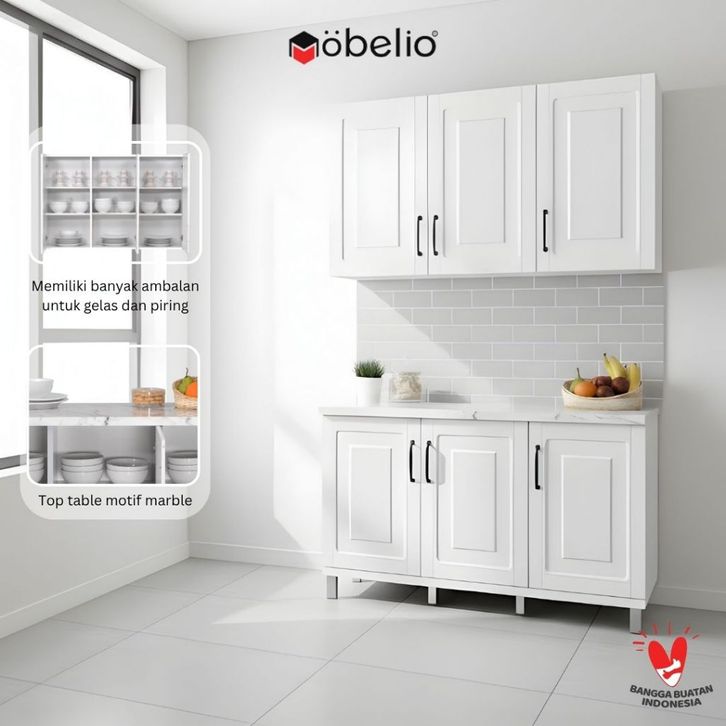 LEMARI RAK PIRING KITCHEN SET LEMARI ATAS BAWAH 3 2 PINTU MINIMALIS SCANDINAVIAN WHITE PUTIH MUTIARA