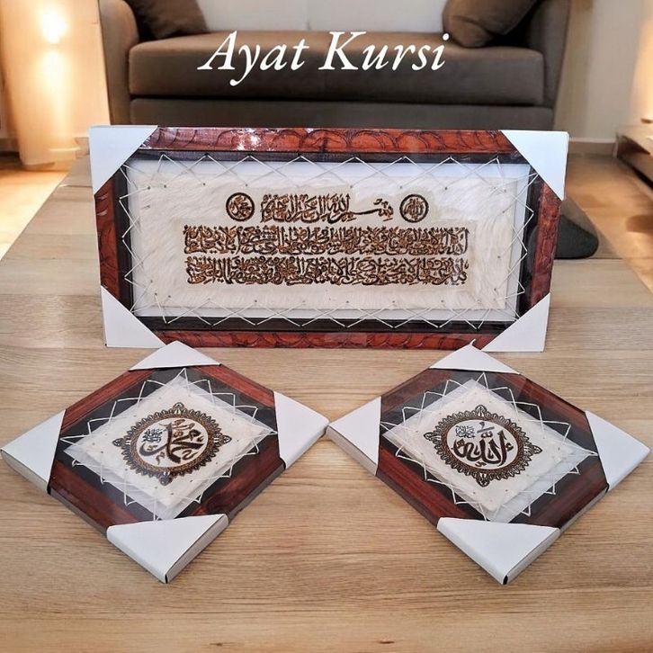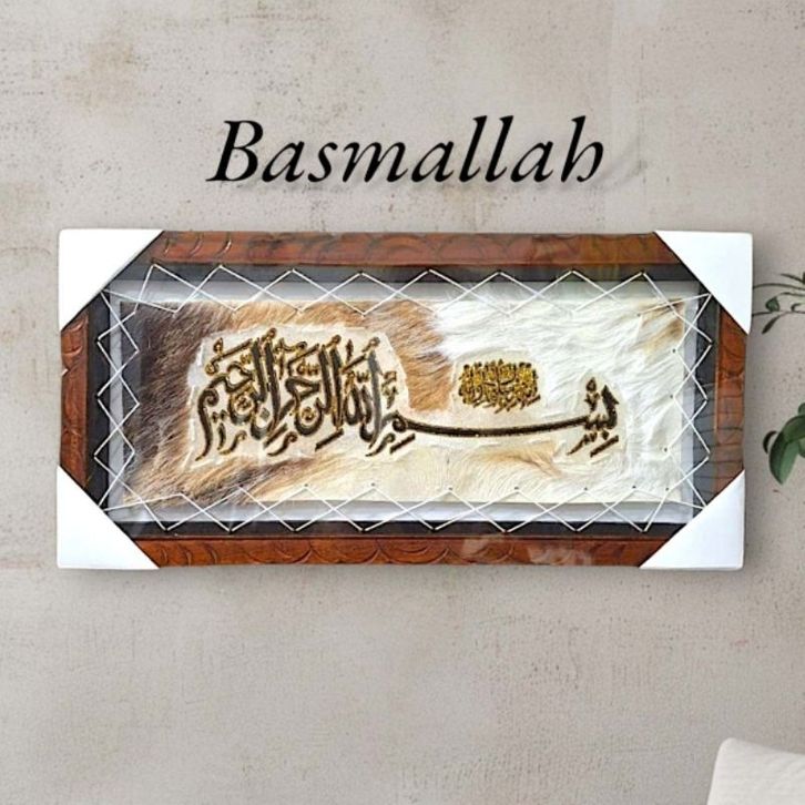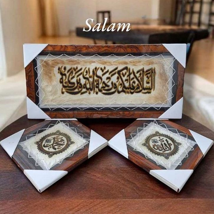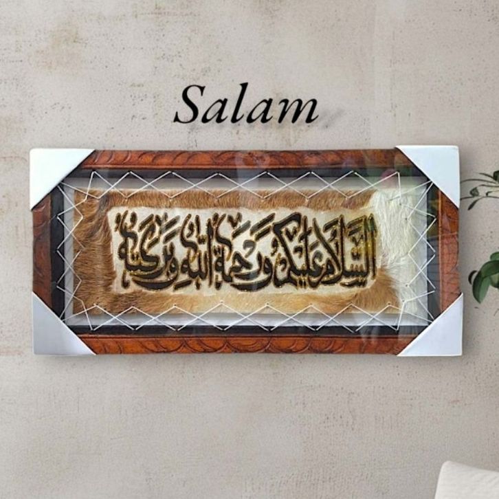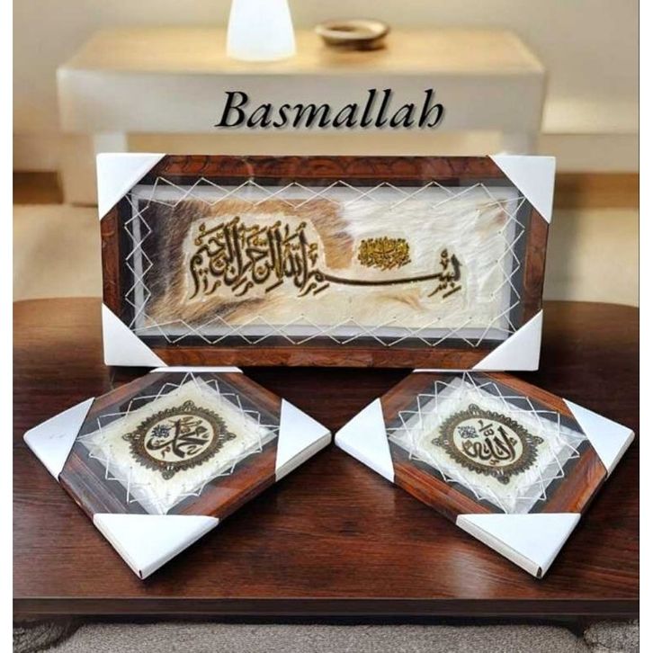 KALIGRAFI HIASAN DINDING KULIT KAMBING LAFAD ALLAH MUHAMMAD BISMILLAH TAUHID SYAHADAT AYAT KURSI KITAB ASSALAMUALAIKUM