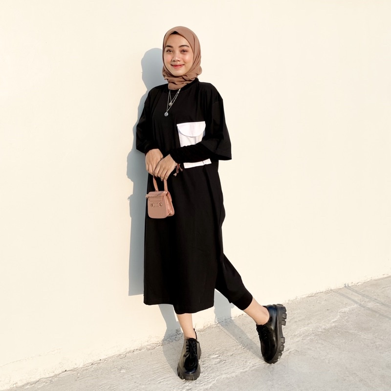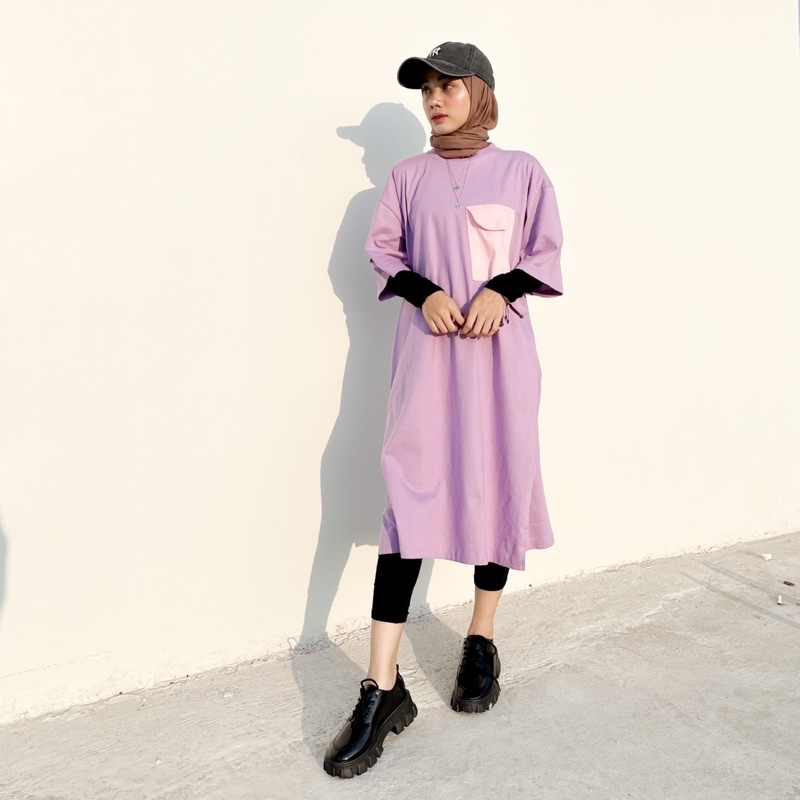 PROMO TERMURAH KAOS TUNIK POLOS POCKET OVERSIZE WANITA KAOS DRESS