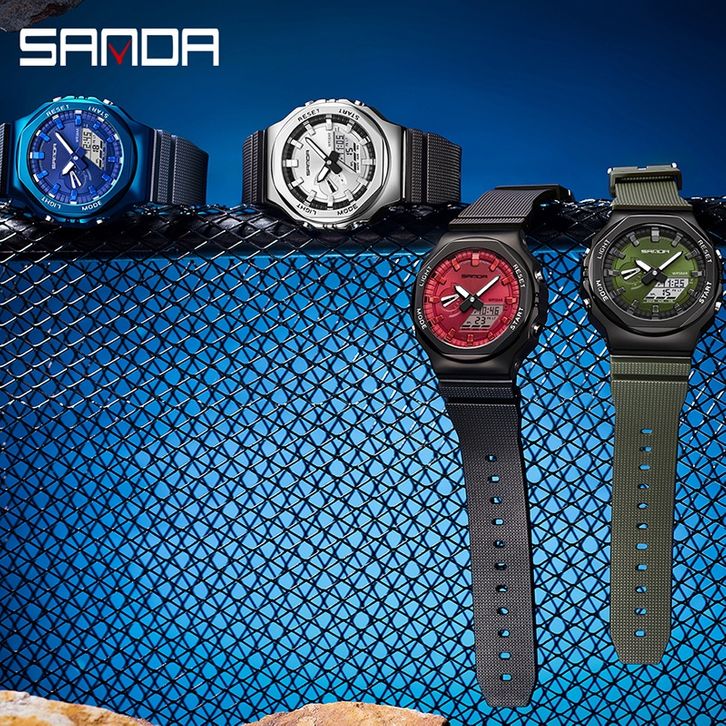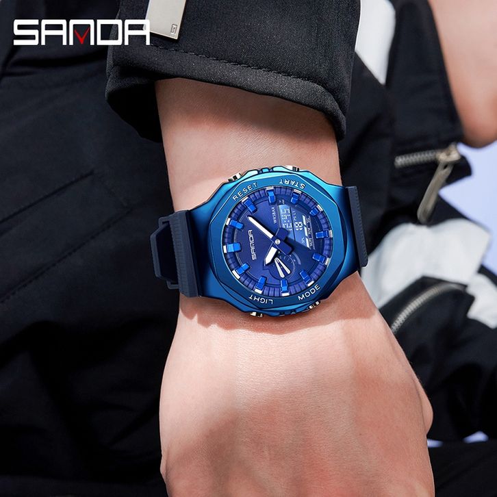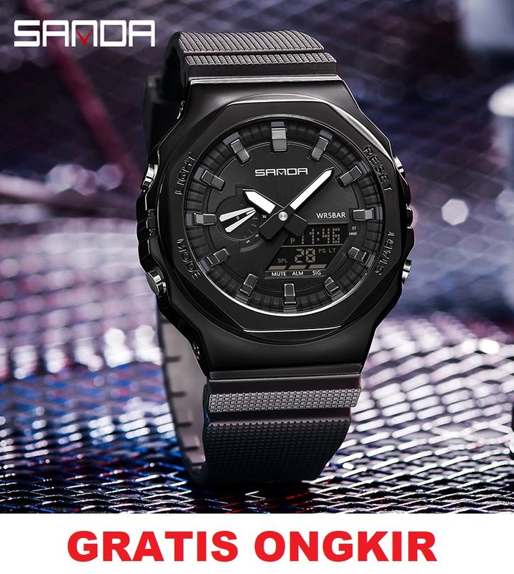 Jam Tangan Pria Wanita SANDA 3167 Digital Sport EL Backlight Tali Rubber Anti Air CURRENOS
