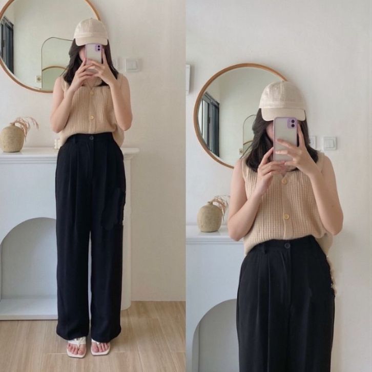 Meira Pants 999 Loose Pants Kancing Celana Kulot Los Pant Wanita Celana Kantor Formal/Casual Trousers Wanita