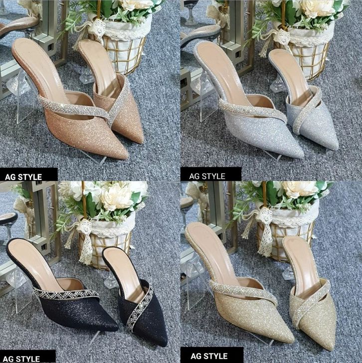Sandal Heels Wanita Glitter XES ZIVA-502 Sandal Heels Glitter Wanita 7cm Sandal Hak Tinggi Wanita Sandal Pesta Wanita