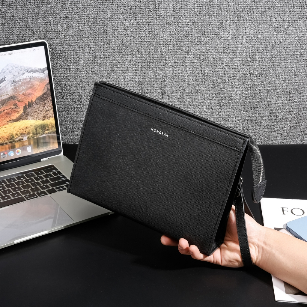 HONYAN MAN GOLD Tas Pria Hand Bag Pria Kulit Import Tas Cowok Waterproof Clutch Pria Free Gift Box - Easton