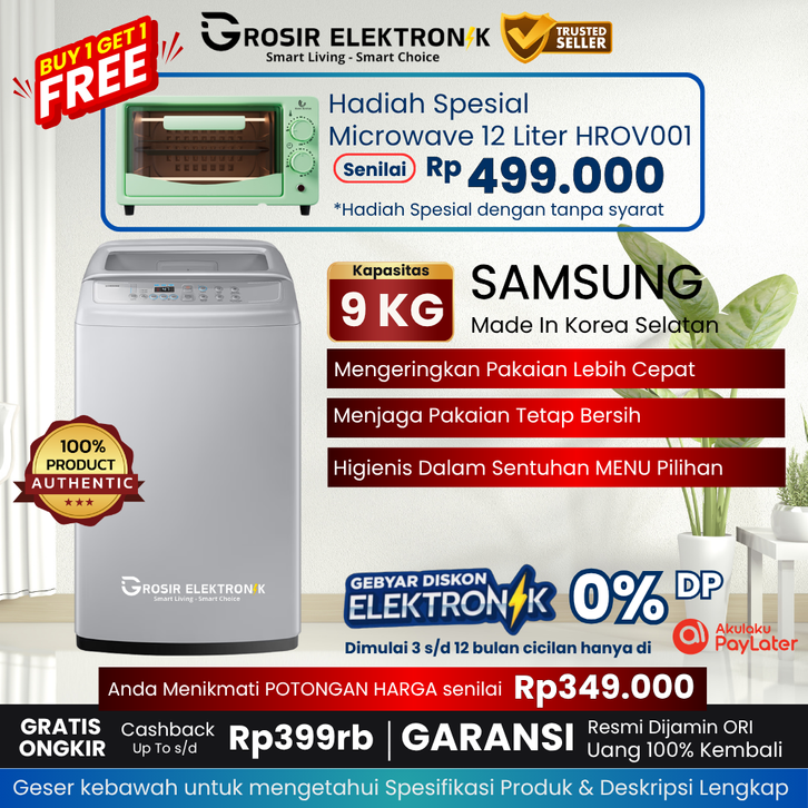 SAMSUNG Mesin Cuci 1 Tabung 9KG - [ WA-H4200S 7KG - 9KG ] - mesin cuci samsung 9kg - STGE - TL1