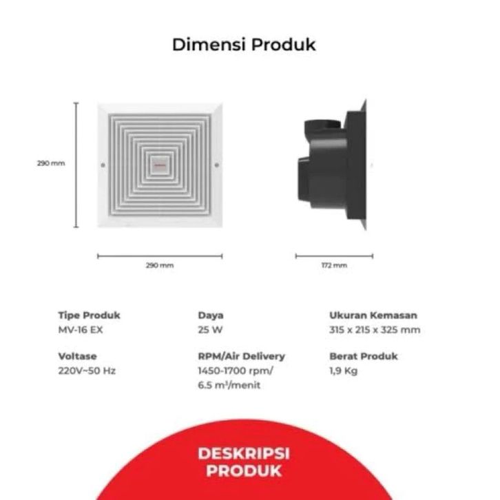 Maspion MV-16EX Exhaust Fan Plafond Heksos Kipas Angin Hisap 10 Inch - GRATIS ONGKIR