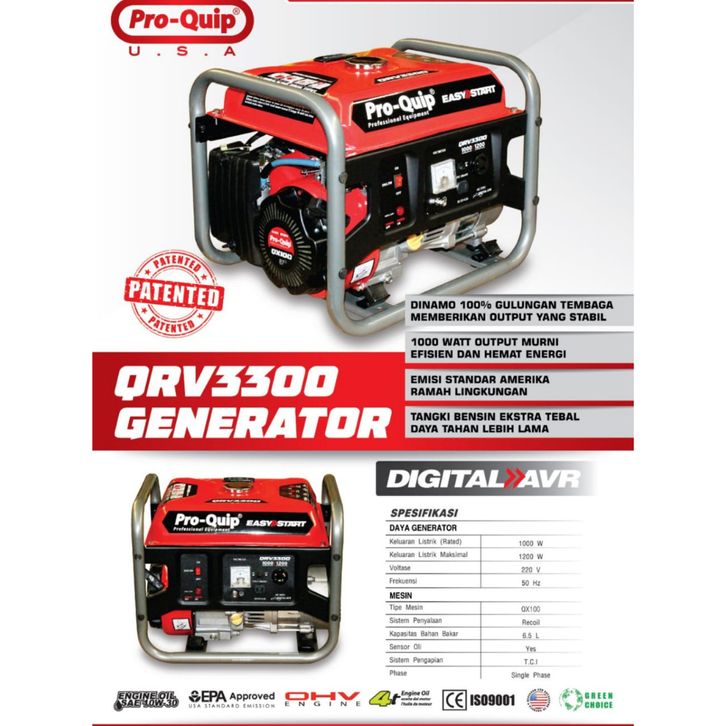 [FREE PACKING]MESIN GENSET BENSIN GENERATOR 1000 WATT PRO-QUIP QRV3300-GENSET GENERATOR LISTRIK TGR 3000 1200 W BENSIN
