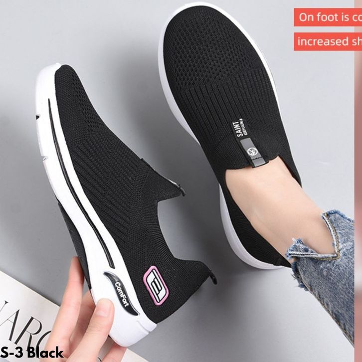 SEPATU KETS SNEAKERS TANPA TALI WANITA NYAMAN IMPORT BREATHABLE BATAM MODEL TERBARU KOREA S-3