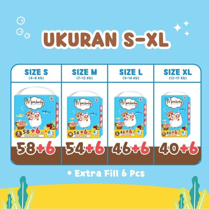 Mombaby Pants S58 M54 L46 XL40 Megapack Popok Celana Sekali Pakai