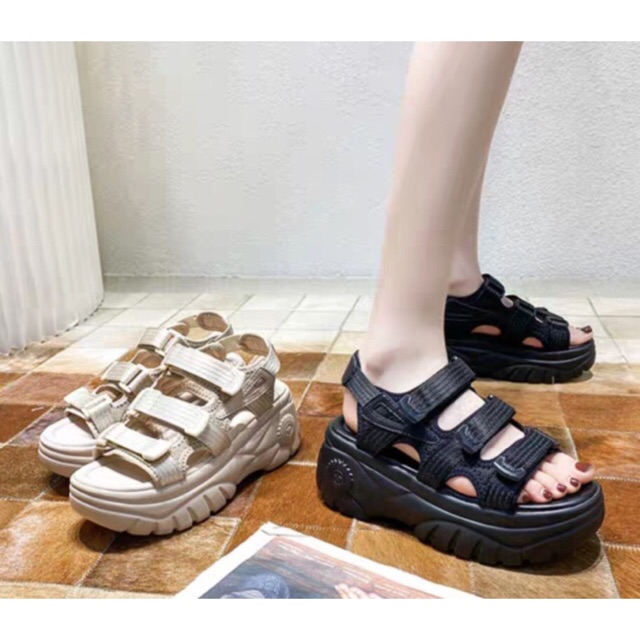 AXELINE PLATFORM WEDGES WANITA ALEXA STRAP KOREA CREAM BLACK BESTSELLER SANDAL GUNUNG