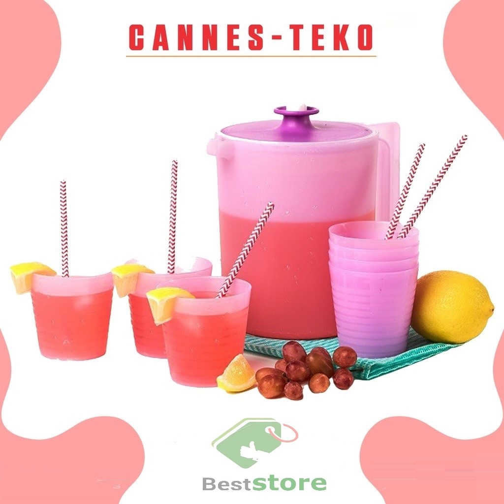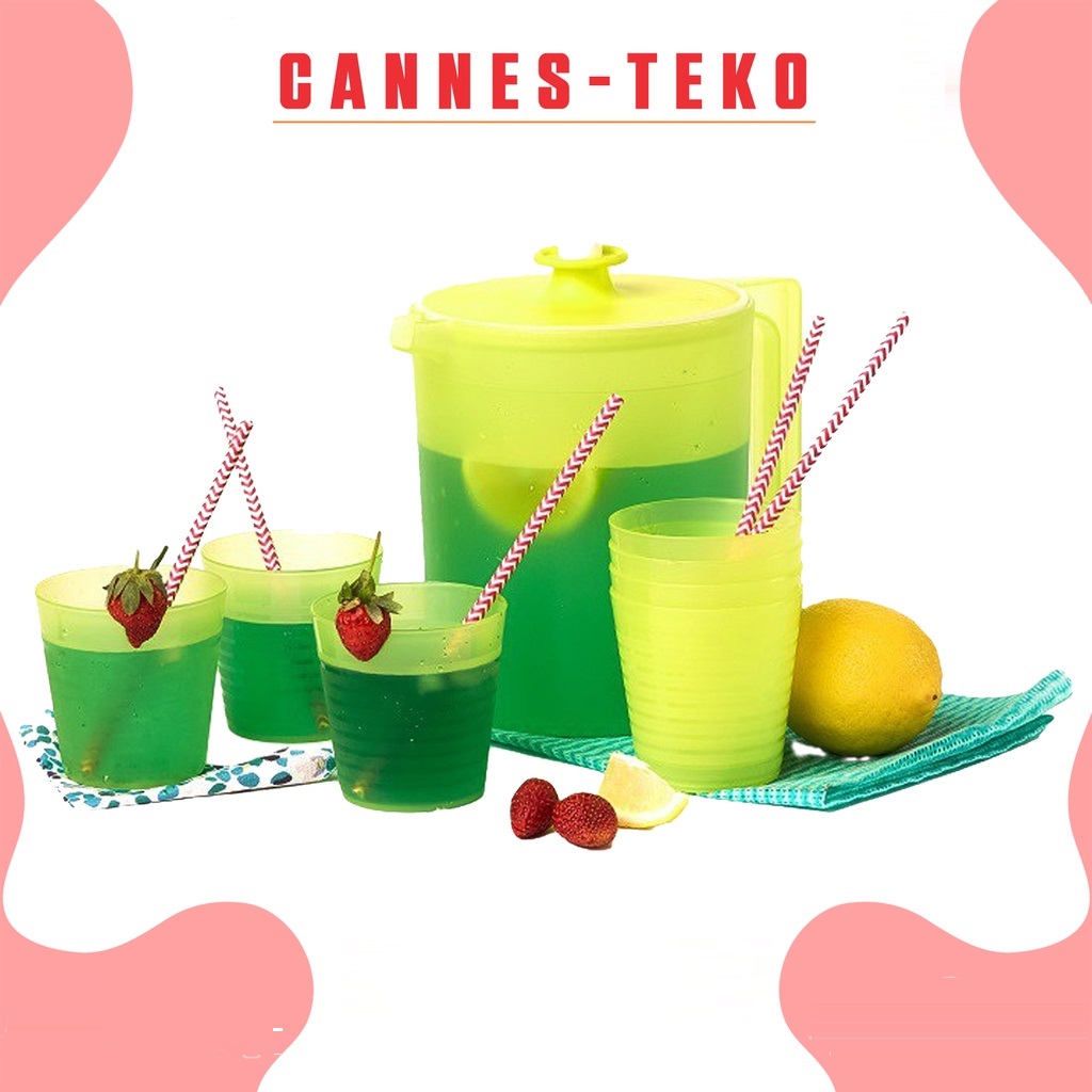 Cannes Teko Set Of 6 / Wadah Penyimpanan Air Minum Dengan 5 Gelas / Ceret Plastik 2,2 Liter