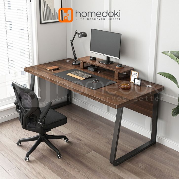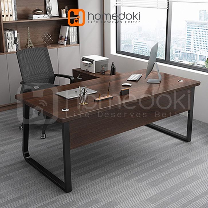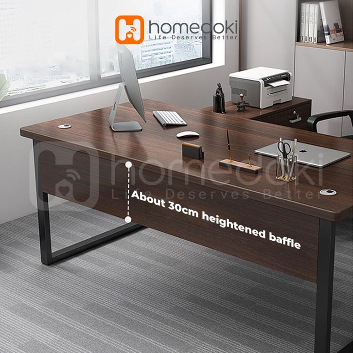 MEJA KERJA KANTOR BELAJAR MINIMALIS KOMPUTER GAMING BAHAN KAYU BENTUK L TERDAPAT RAK STRUKTUR RANGKA BAJA YANG KUAT