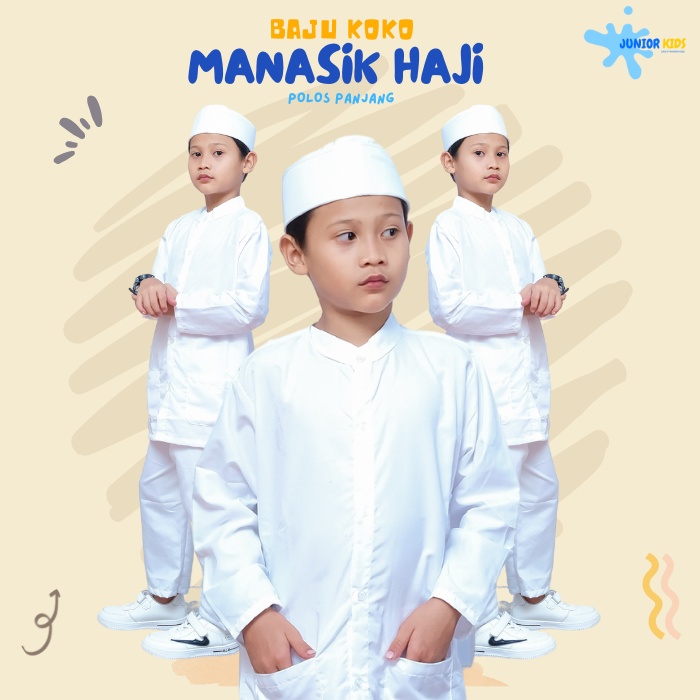 BAJU KOKO MANASIK HAJI POLOS ANAK LAKI LAKI WARNA PUTIH USIA 1-10 BAJU KOKO ANAK KOKO PUTIH