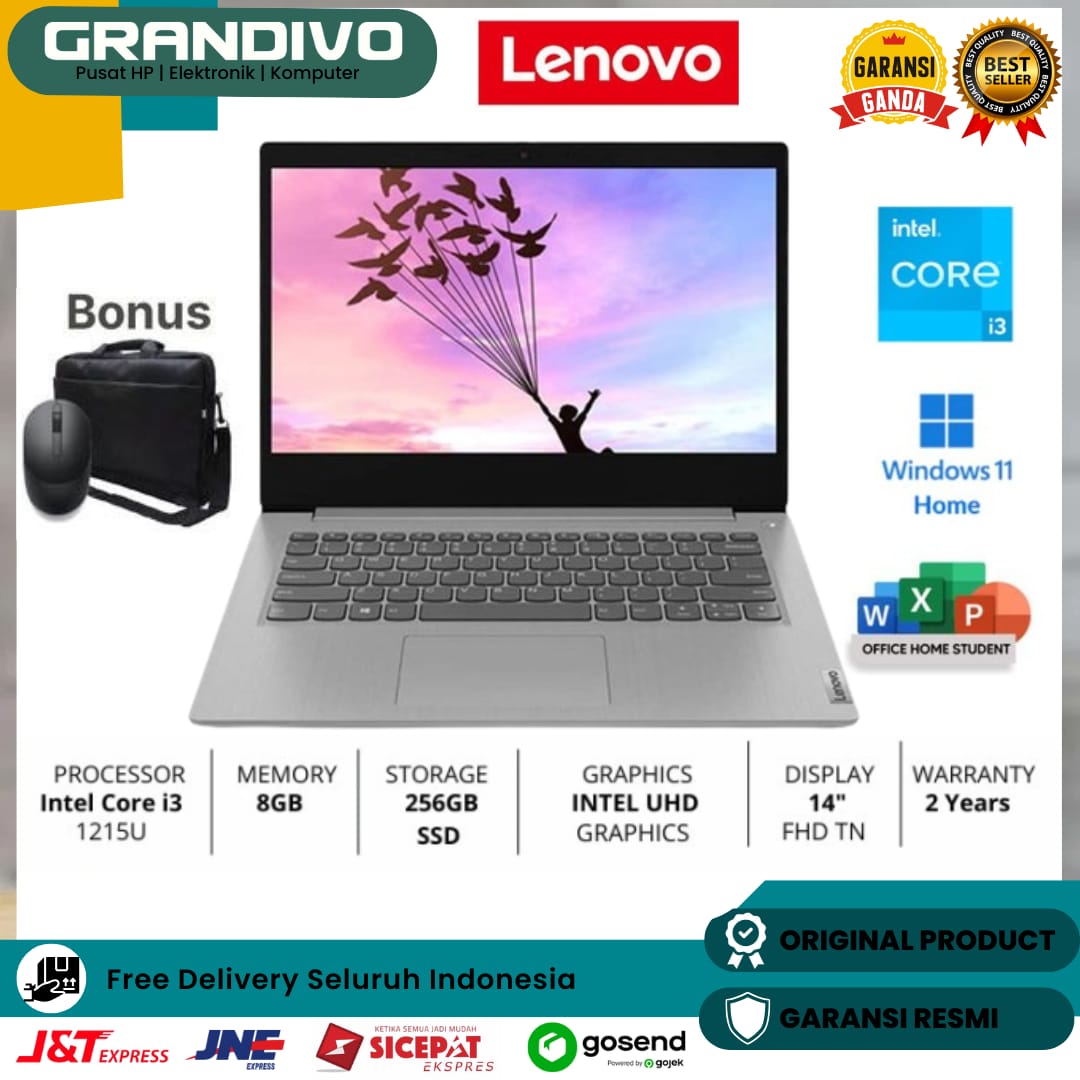New Lenovo Ideapad Slim 3 14IAU7 Intel Core i3 1215U RAM 8GB SSD 256GB W11+OHS 14" FHD Backlit Garansi Resmi - Grandivo