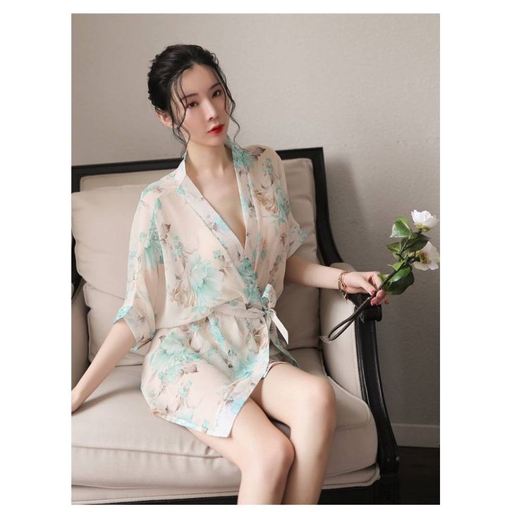 KIMONO LINGERIE SEXY GSTRING BAJU TIDUR BAHAN SIFON DICETAK PRINTING KFLOW