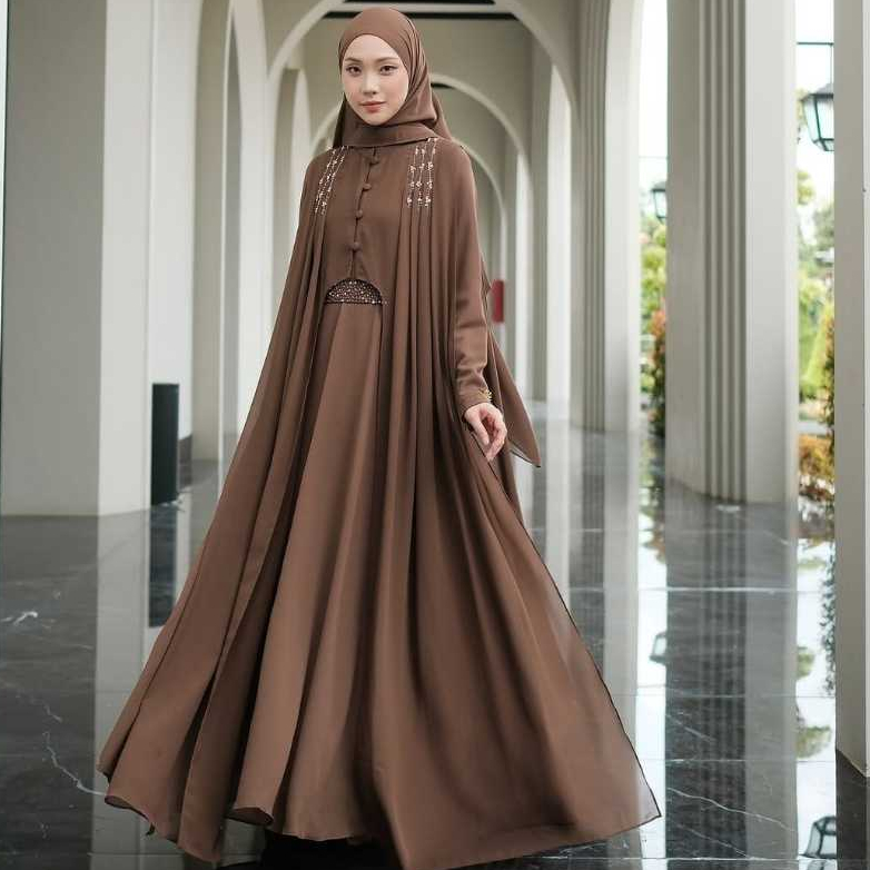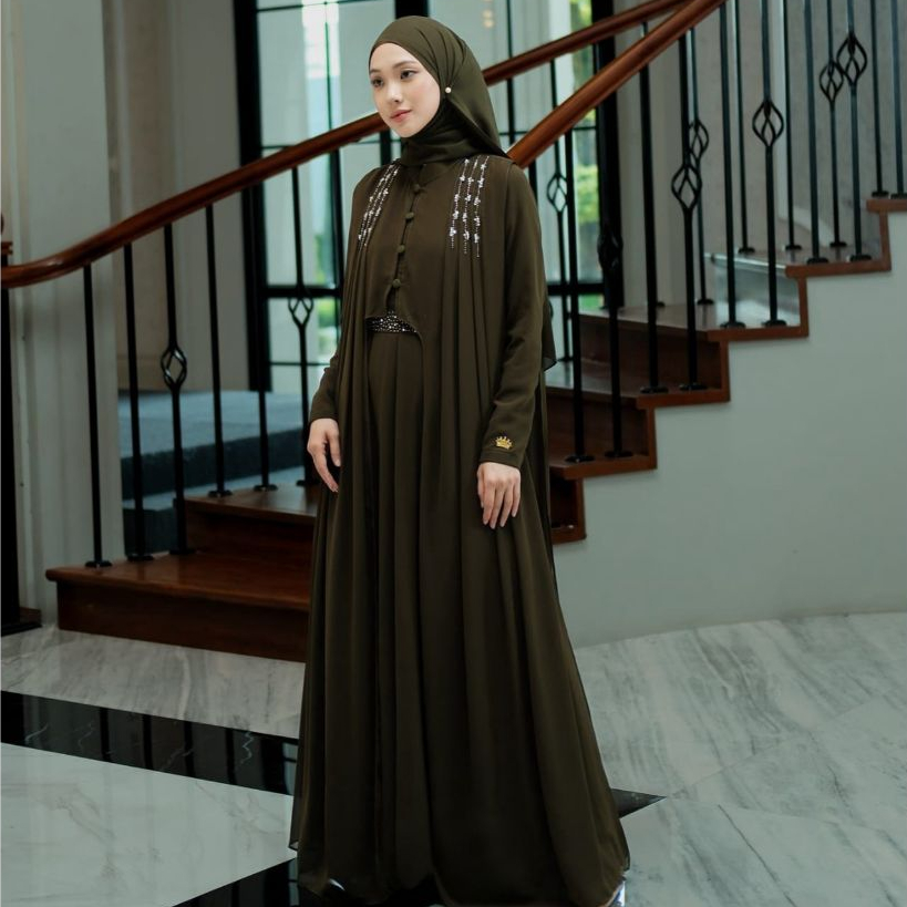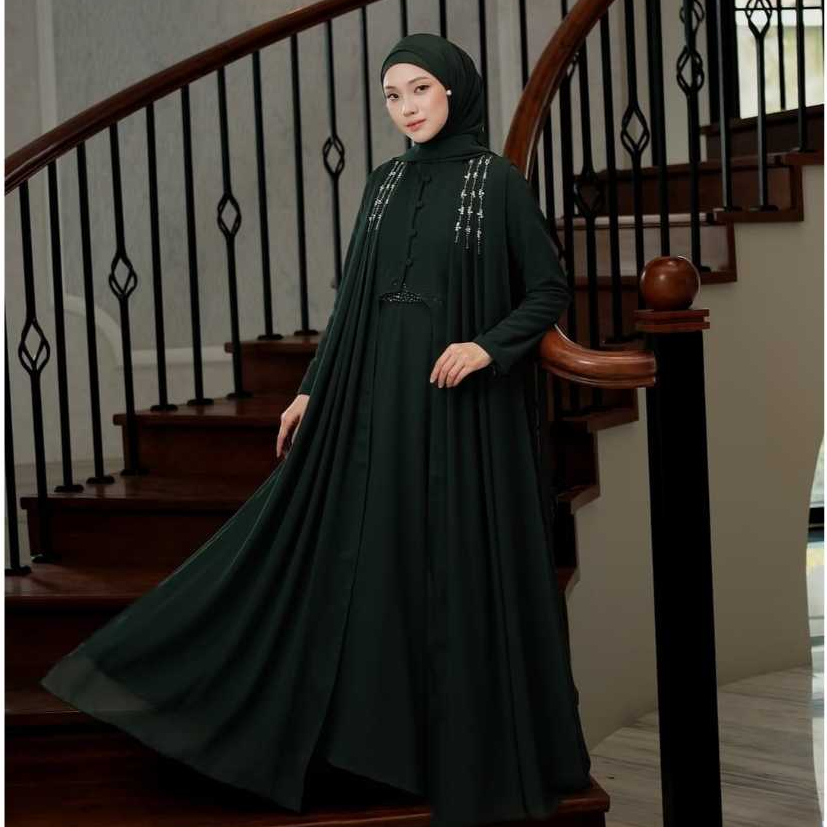 Haneen Dress Abaya Bahan Ceruty Babydoll Mix Payet Mutiara Dan Swarovski Cantik Ukuran M , L , XL Dan XXL