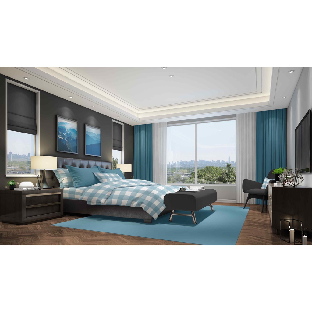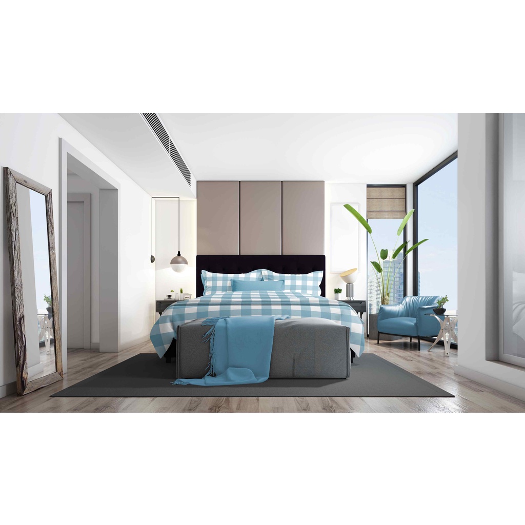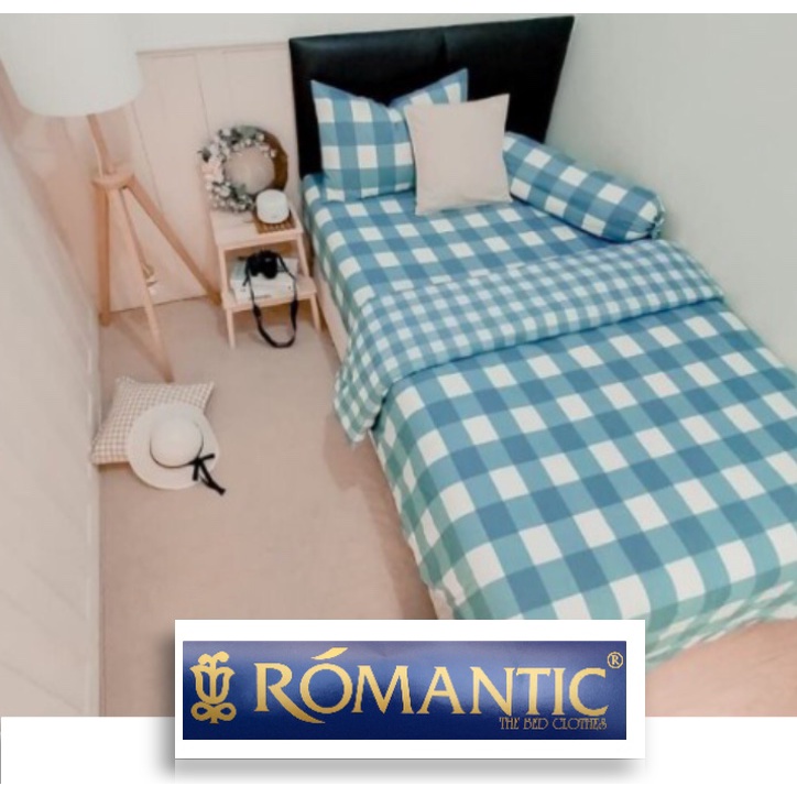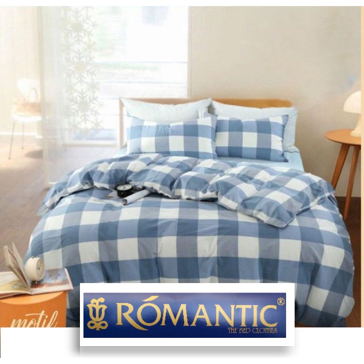 Bedcover Set Sprei Emily Biru Kotak Aesthetic Korea by ROMANTIC Katun Jepang Size 200x200 180x200 160x200 120x200