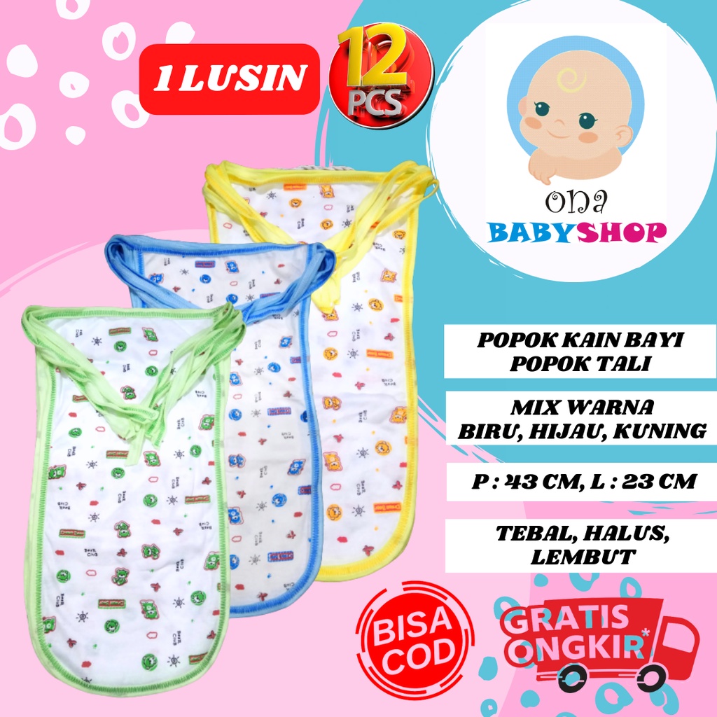 12 PCS POPOK KAIN TALI BAYI BAHAN KATUN BISA CUCI ULANG NEWBORN BABY BARU LAHIR LUSINAN