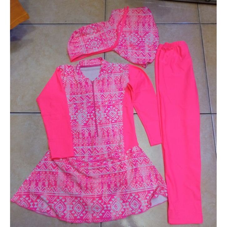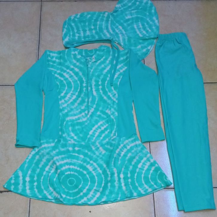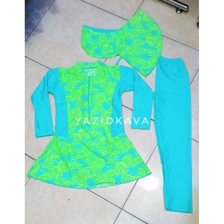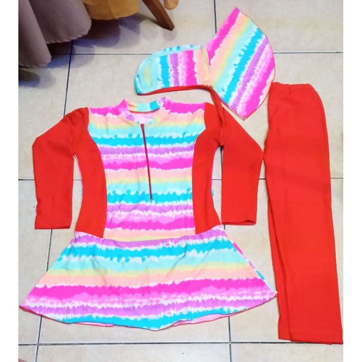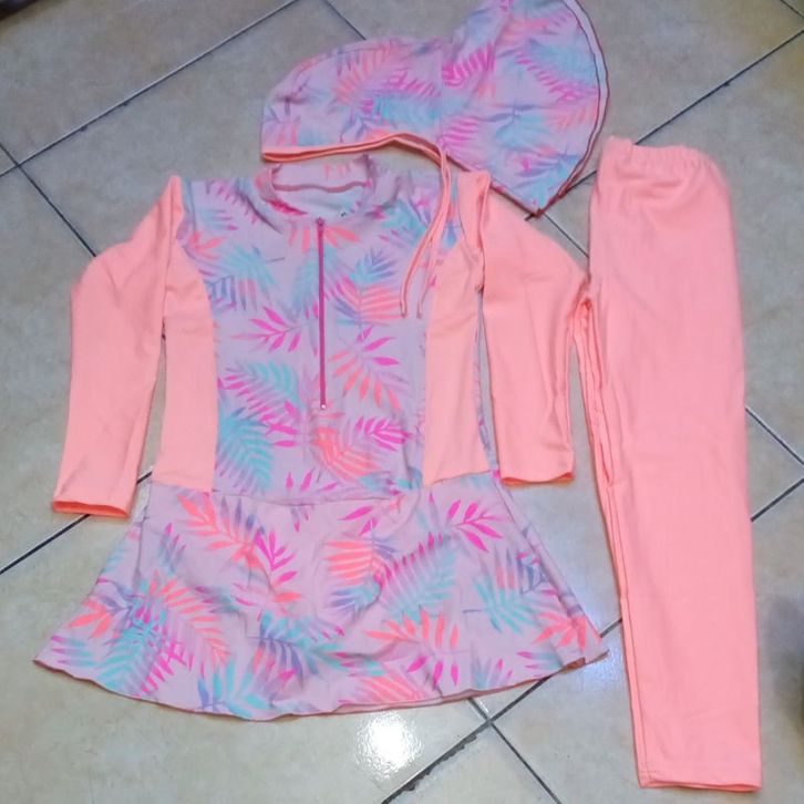 Baju renang anak perempuan muslim satu setel celana kerudung