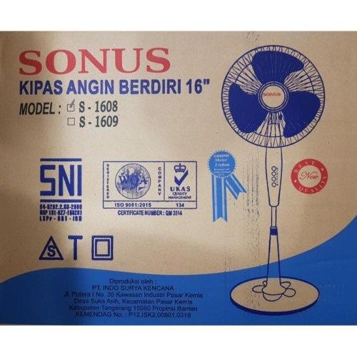 Kipas Angin SONUS SS-1608 Kipas Berdiri 16 Inchi 4 Baling Kipas Murah Berkualitas