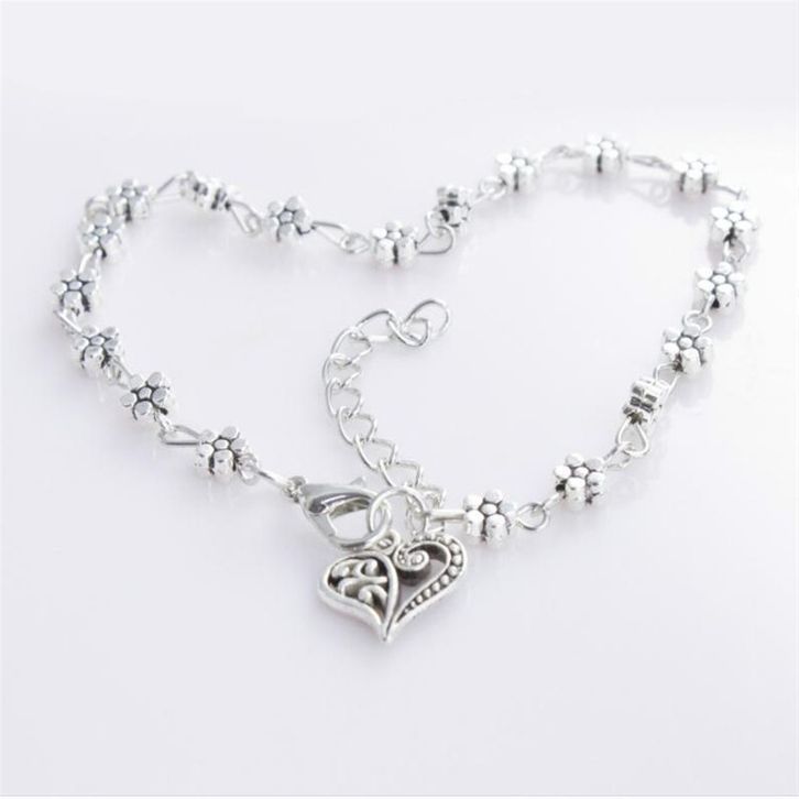 Gelang Kaki Wanita Bentuk Hati Dan Bunga Aksesoris Wanita Gelang Rantai Perak Korea Anti Karat