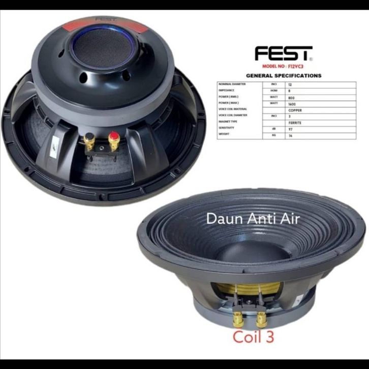Komponen Speaker Fest F12VC3 F12 VC3 F 12VC3 Original 12 inch