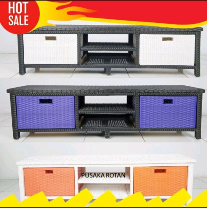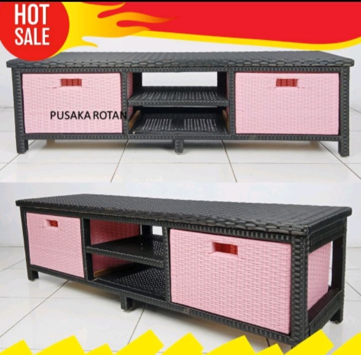 (GRATIS ONGKIR) Rak TV Lemari Rotan Sintetis Plus Tempat DVD Minimalis