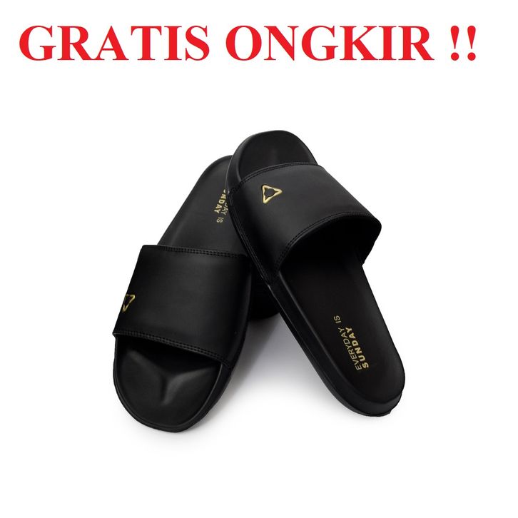 Sun Casual - Vol 2 Black / Gold | Slippers Slide | Sandal Pria | Sandal Wanita | Sandal Unisex