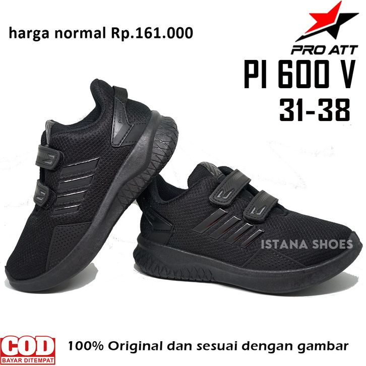 Sepatu Sekolah Anak Laki Laki Cowok Perempuan TK SD SMP Full Hitam Sneakers Casual Perekat PRO ATT PI 600