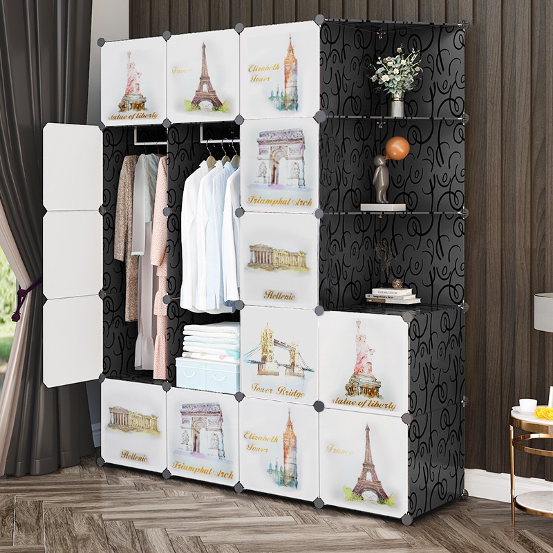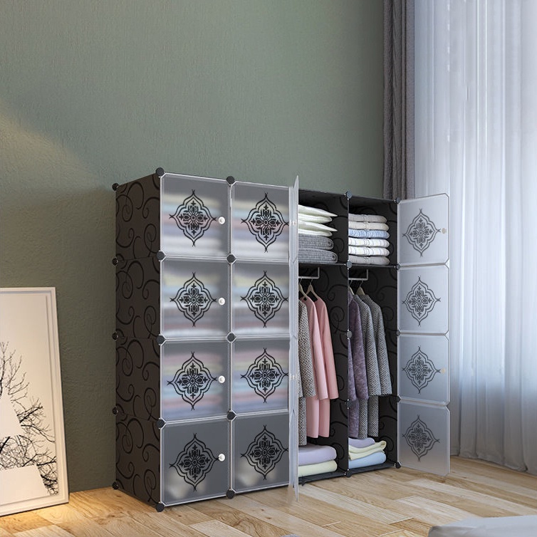 Lemari Pakaian 16 dan 17 Pintu 2 Gantungan Baju lemari plastik rak serbaguna Lemari portabel Lemari Multifungsi Tanpa Dp