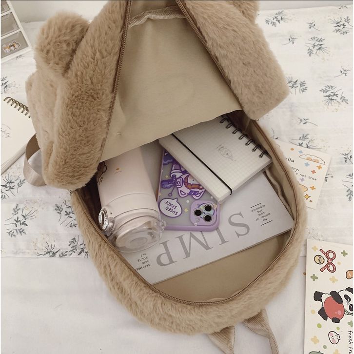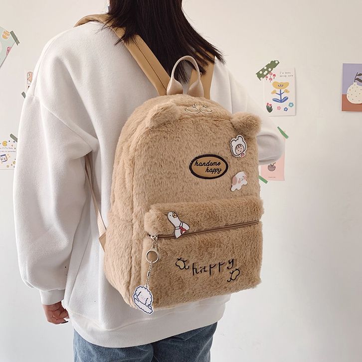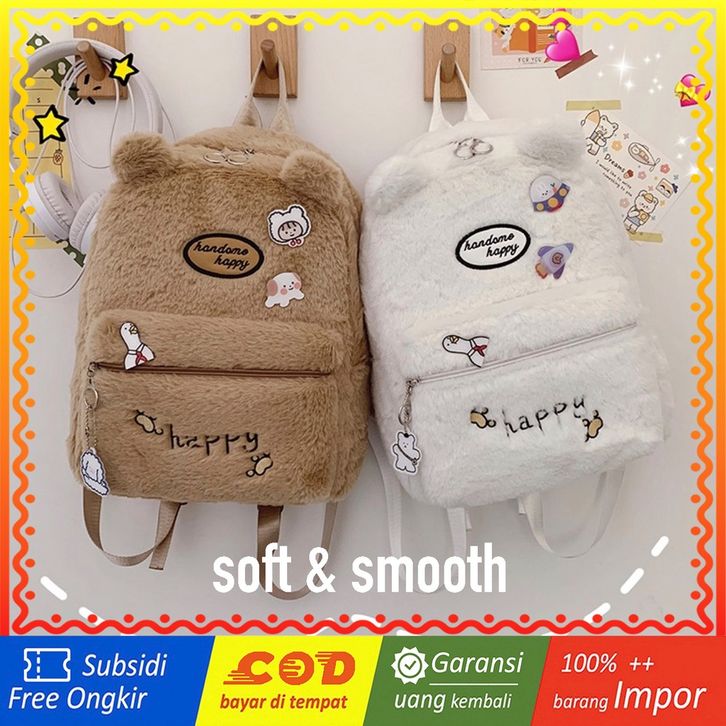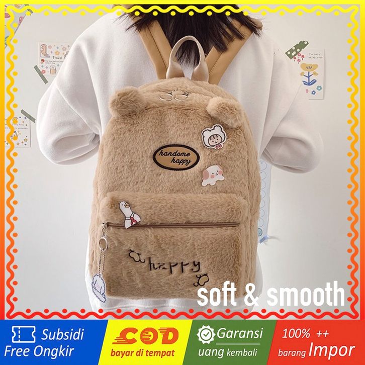 WYK84 Tas Ransel Wanita Bulu Beruang Happy Bear Backpack Feather Impor MKT
