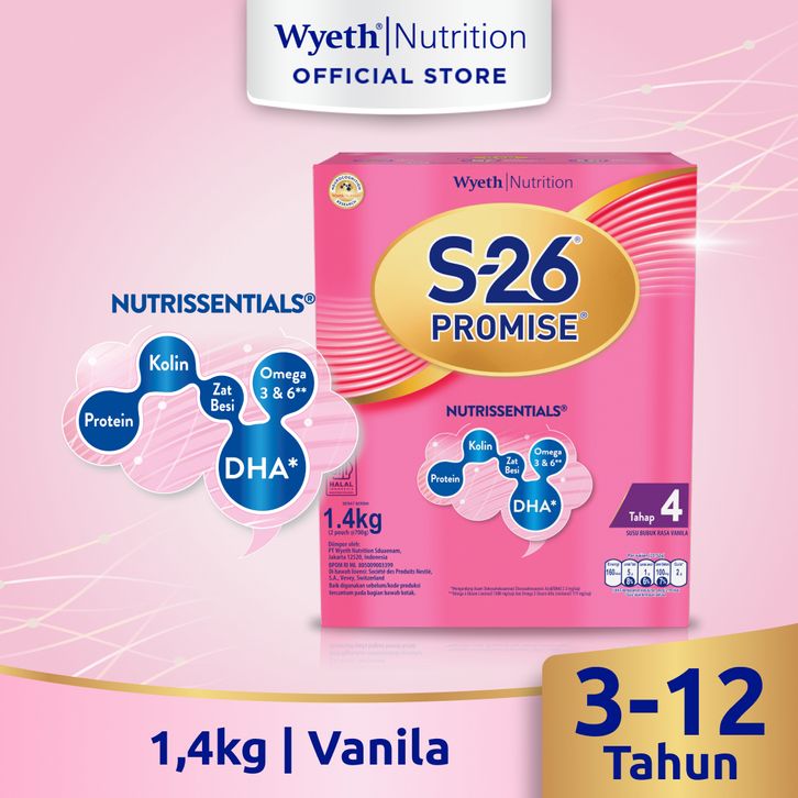 S-26 S26 Promise Tahap 4 Vanila Susu Bubuk untuk Anak Usia 3-12 Tahun, Kotak 1400 gr