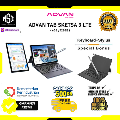 [ Official Store ✔ ] (FREE KEYBOARD + STYLUS PEN) ADVAN Tablet Sketsa 3 6GB/128GB 10.1” Inci HD IPS Dual SIM Card 4G LT