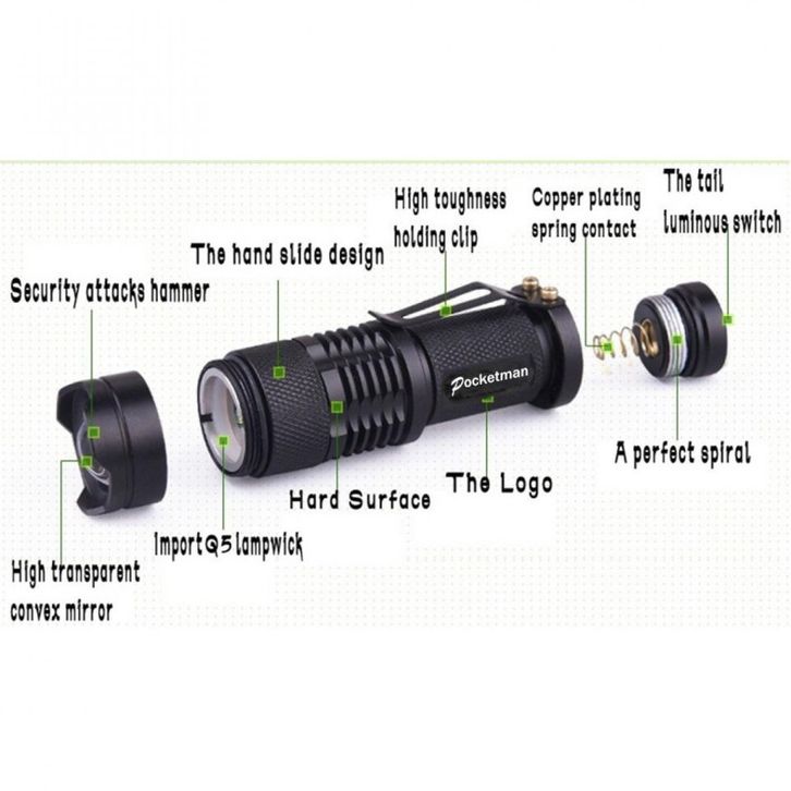 Senter Pocketman Senter LED Flashlight 2000 Lumens Waterproof