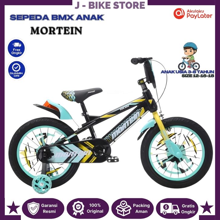SEPEDA BMX 12 16 18 MORTEIN fitur TAMENG dengan Musik dan lampu ban jumbo 2.50 untuk anak usia 2 tahun sampai 8 tahun