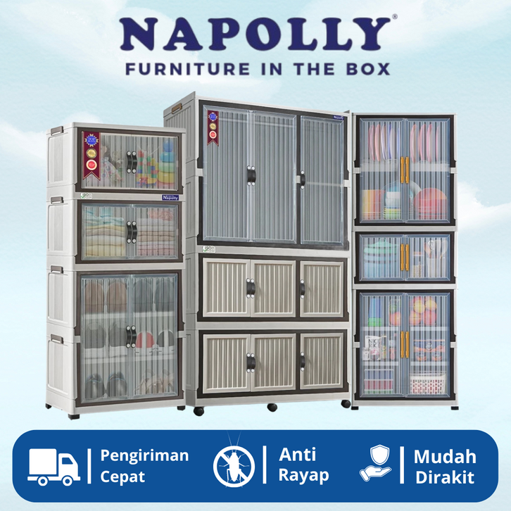 Napolly Lemari Plaastik Lipat Susun Multifungsi 5 Pintu 4 Susun Pintu 3 Jumbo Rakit Berkualitas 2024 Cermin Modern Gantu