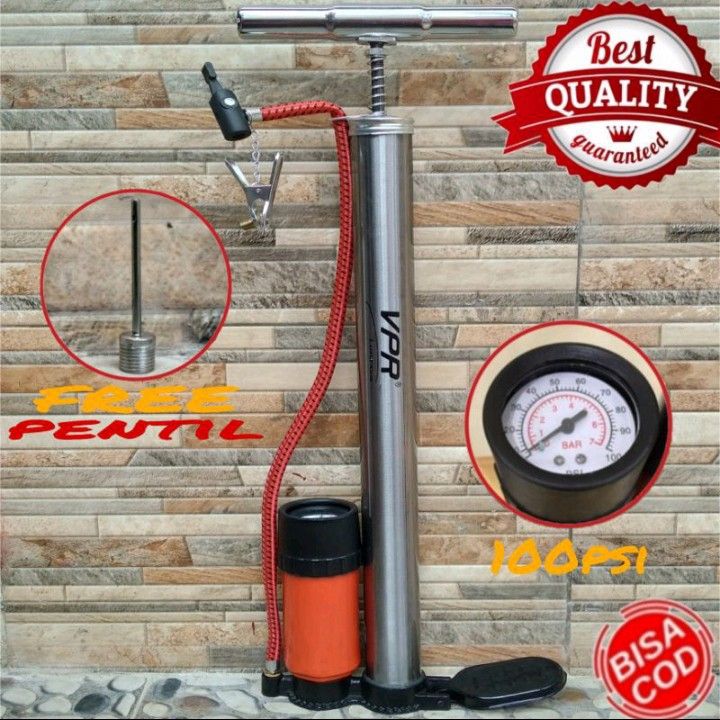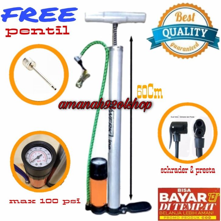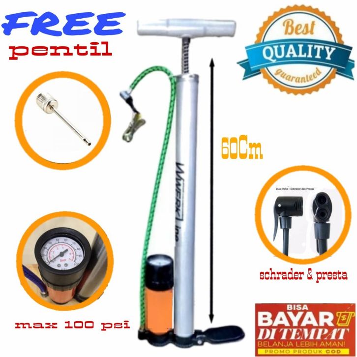 Pompa Angin Ban Sepeda Motor Mobil Tabung ATALANTIS Full Meter Besi Te