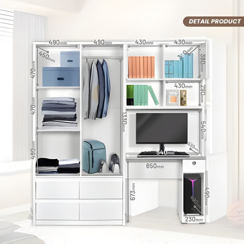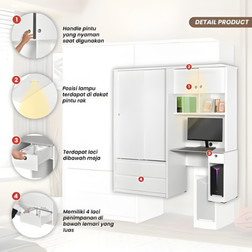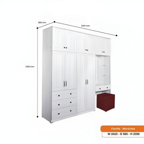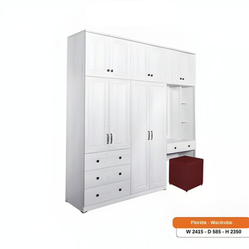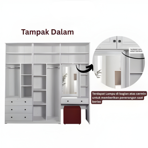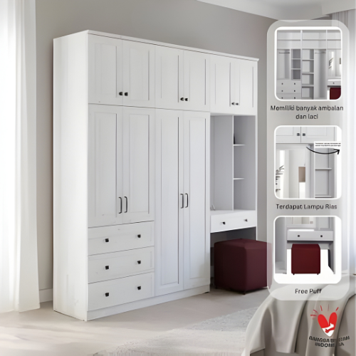 LEMARI PAKAIAN MEJA RIAS JUMBO CERMIN LAMPU LED PUFF WHITE FLORIDA PARTICLE BOARD MDF EKSPORT GRADE MULTIFUNGSI