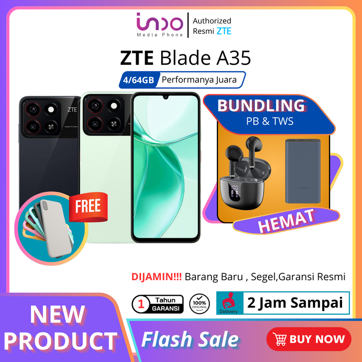 [ 𝟮 𝙅𝙖𝙢 𝙏𝙞𝙗𝙖 ] ZTE A35 BLADE 4GB 64G Unisoc IPS LCD, 90Hz Android 14 Garansi Resmi