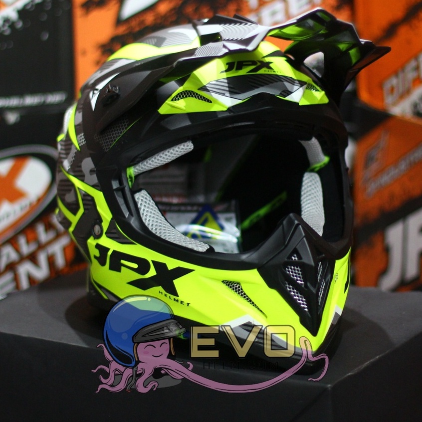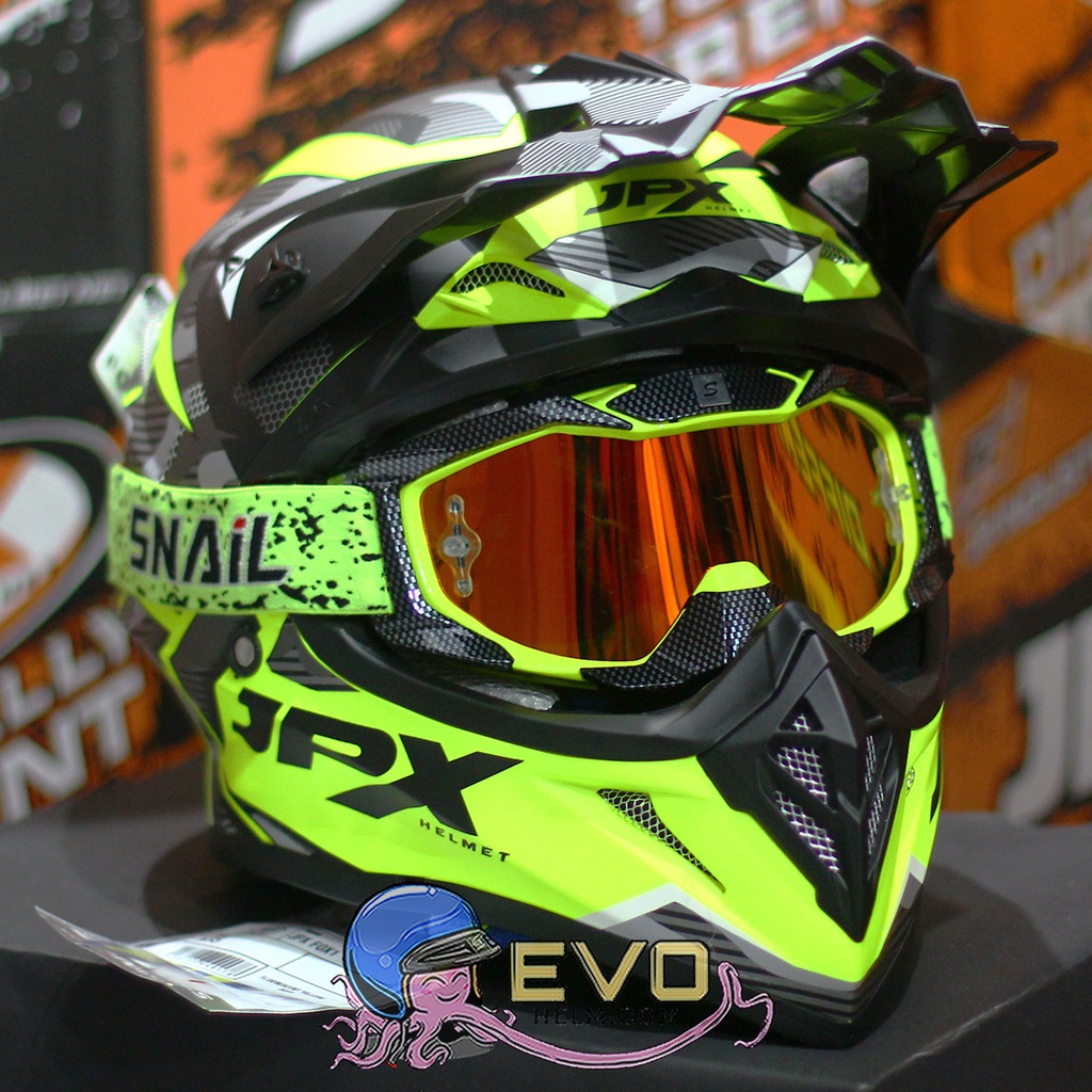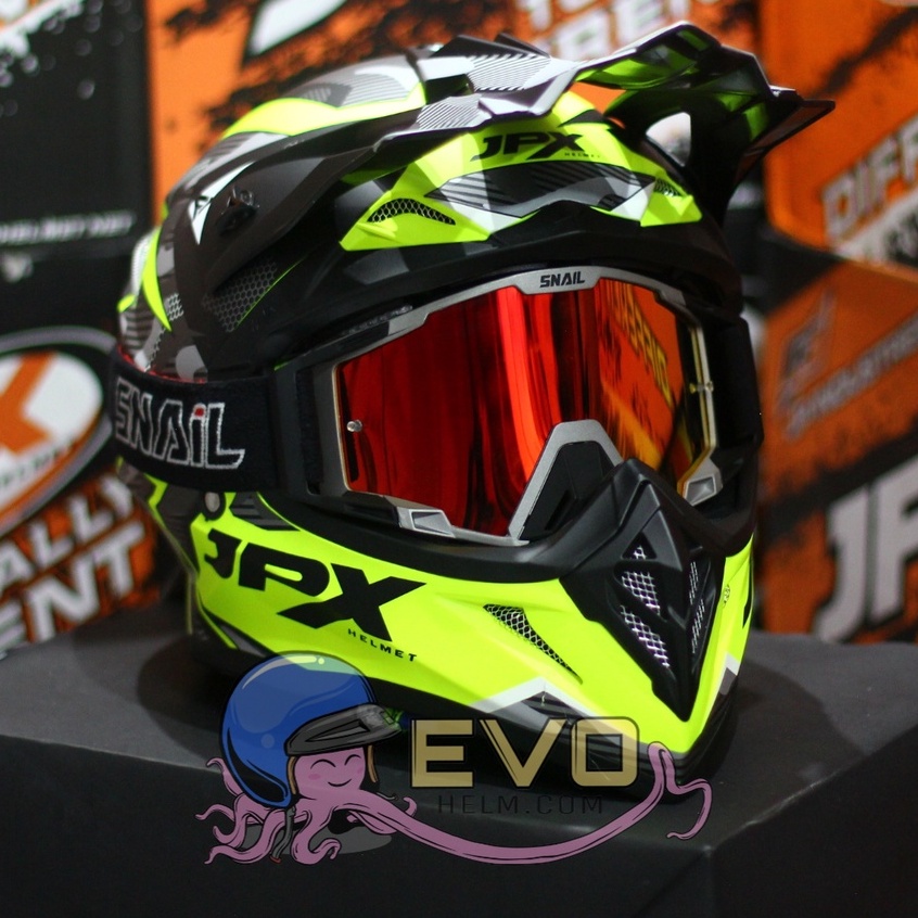 HELM JPX CROSS_FOX1 SERI X35 - FLUO YELLOW DOFF + GOOGLE SNAIL (ONGKIR 2 KG) HELM JPX X35 YELLOW FLUO ORIGINAL HELM JPX