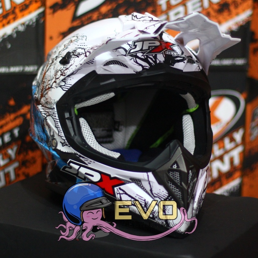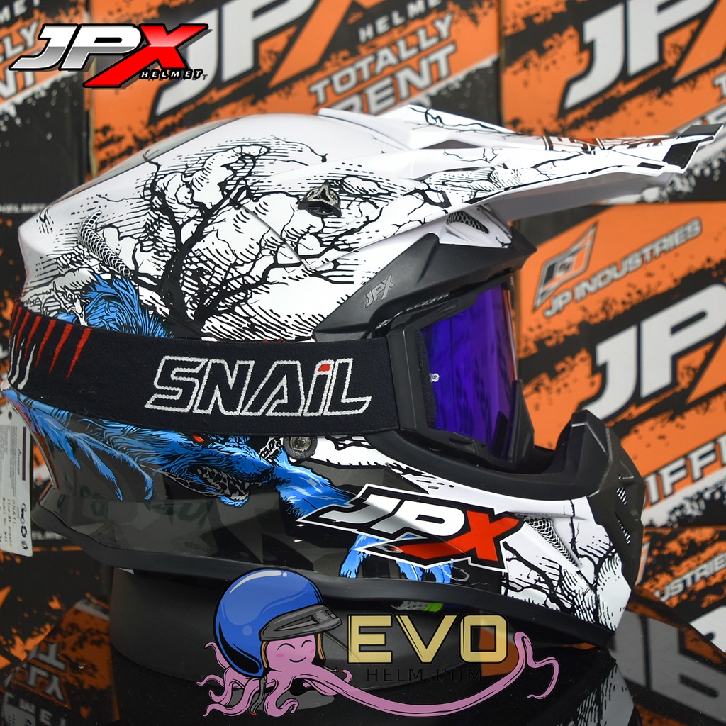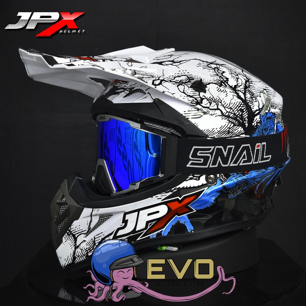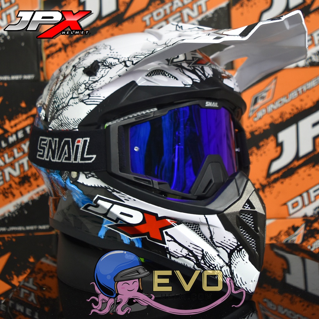 HELM JPX CROSS_FOX1 SERI X14 - PEARL WHITE + GOOGLE SNAIL (ONGKIR 2 KG) HELM JPX TERBARU